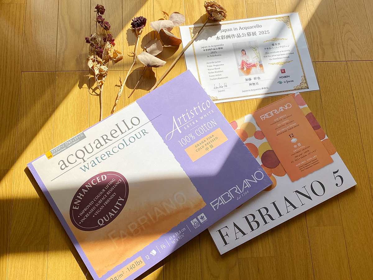 副賞として株式会社クサカベ様より、水彩紙 「FABRIANO Artistico」 と 「FABRIANO 5」 のブロック紙2冊を頂戴しました。